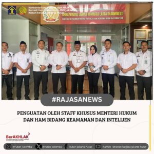 Kepala Rutan Kelas I Jakarta Pusat beserta seluruh Pejabat Struktural menyambut kedatangan Staff Khusus Menteri Hukum dan HAM Bidang Keamanan dan Intelijen, Krismono, Rabu (20/03). Penguatan yang diberikan terkait integritas dan pengamanan dalam lingkup Rumah Tahanan/Lembaga Pemasyarakatan. Krismono sebagai Mantan Kepala Lapas Kelas IIA Narkotika membuka ruang diskusi terkait pengamanan dan membagikan pengalaman ketika bertugas di Pemasyarakatan.