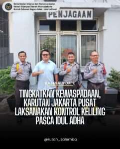 Jakarta, HumasRajasa- Kepala Rutan Kelas I Jakarta Pusat, Wahyu Trah Utomo melaksanakan giat trolling secara langsung pasca pelaksanaan Idul Adha 1446 H, Minggu (08/06). Wahyu memastikan keadaan rutan selalu dalam keadaan aman, tertib, dan juga kondusif.